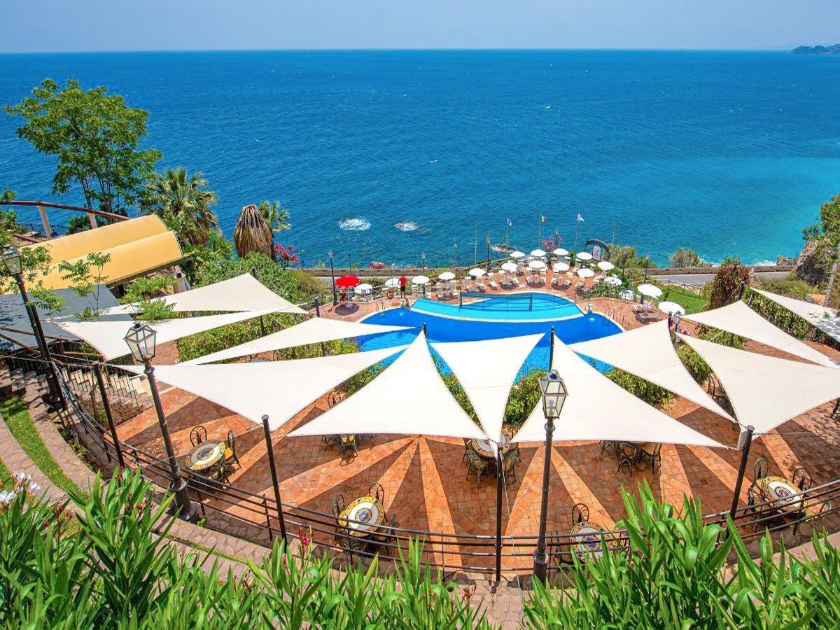 Baia Taormina CDSHotels , con i suoi ampi archi e pergolati, i suoi rivestimenti in pietra locale e rifiniture in cotto artigianale siciliano, si adagia sulla scogliera che sovrasta la baia di Taormina (ME) dalla quale prende il nome.