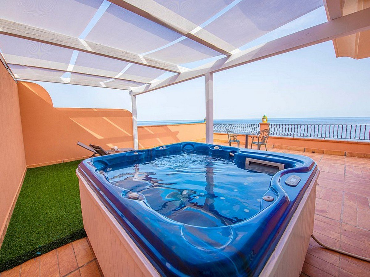 Elegant Suite Vista Mare: con una superficie di 50 mq, da 2 a 4 posti letto, è dotata di 1 camera da letto, 1 soggiorno con divano letto doppio, 1 ampio ingresso, 1 bagno e una terrazza vista mare di 30 mq con vasca idromassaggio. Disponibile con supplemento sulla tariffa della Luxury Room.