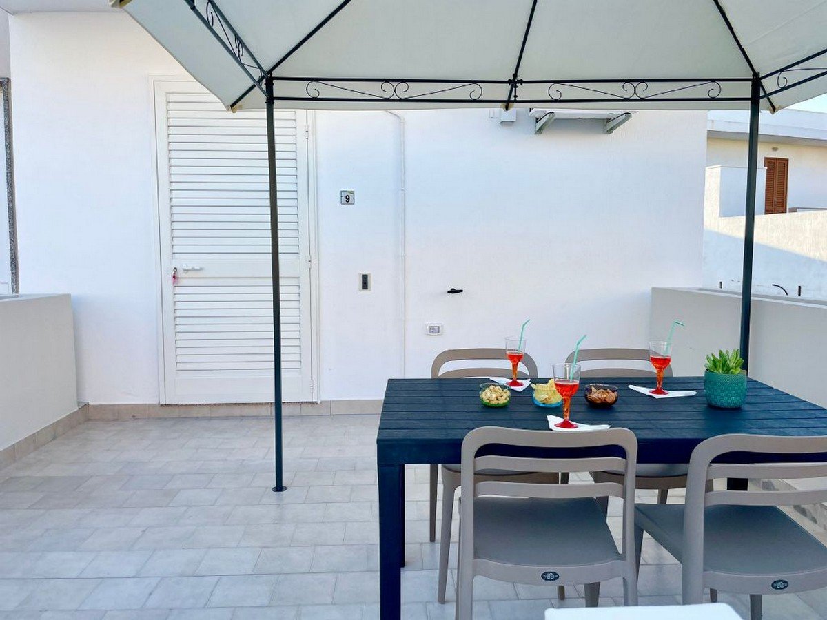 Il complesso residenziale è composto da unità abitative appena ristrutturate e finemente arredate con gusto e raffinatezza e molto funzionali. Composte da una camera da letto matrimoniale, una cameretta con 2 letti piani, un bagno con doccia, una cucina attrezzata con angolo cottura e frigorifero, condizionatore, infissi con zanzariere, lavatrice. Tutte con spazio esterno attrezzato con tavolino e sedie. Gli appartamenti al piano terra hanno il parcheggio incluso, quelli al primo piano hanno il Pass per parcheggiare nelle strisce blu.