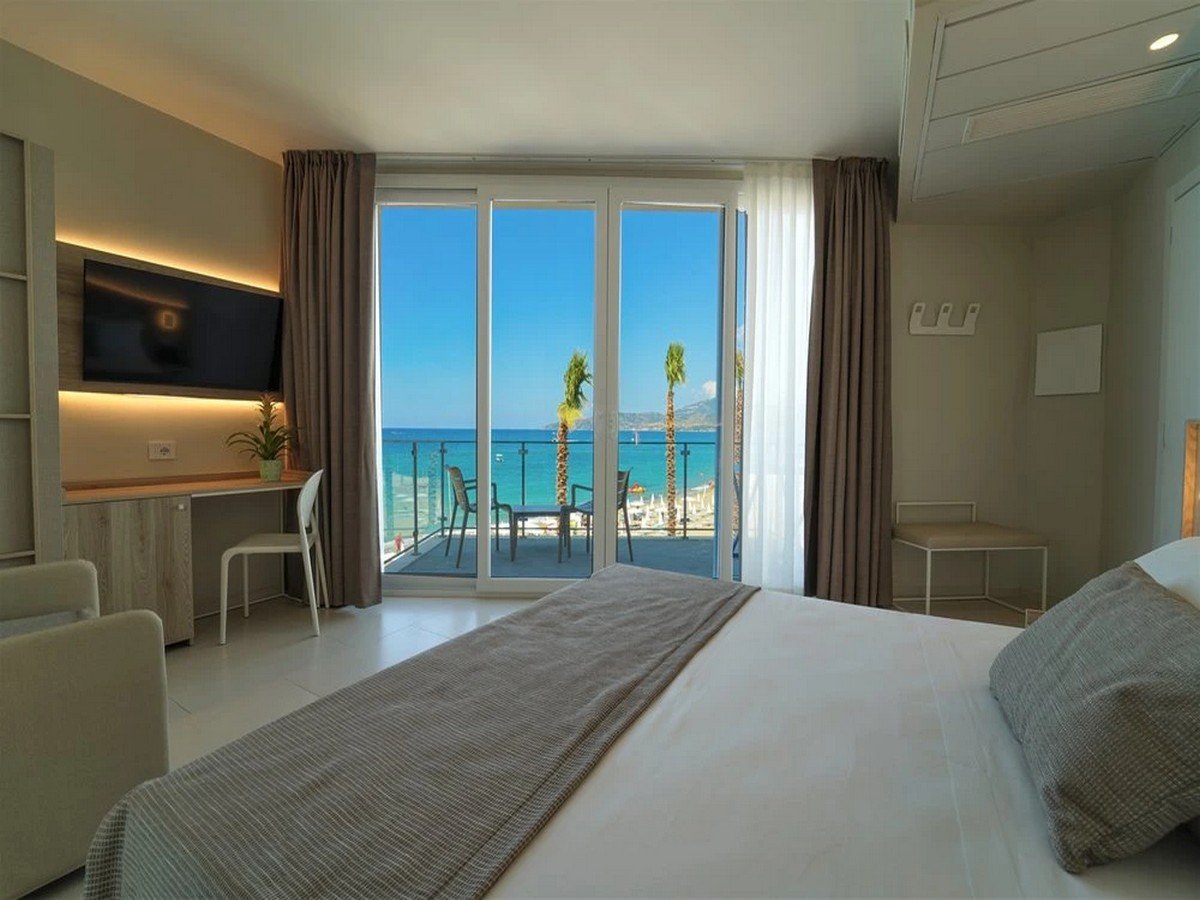 Le camere, moderne, luminose ed elegantemente arredate, sono tutte dotate di telefono, tv, cassetta di sicurezza, frigobar (allestimento su richiesta, consumazioni a pagamento), aria condizionata, connessione wi-fi, servizi con doccia e asciugacapelli, quasi tutte con balcone o patio attrezzati. Disponibili su richiesta camere per ospiti diversamente abili.