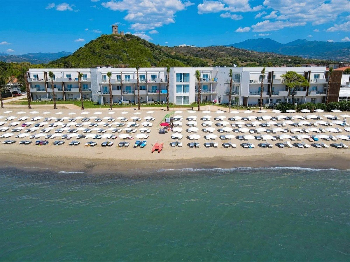 Direttamente sul mare, spiaggia di sabbia fine, attrezzata. Servizio spiaggia incluso nella Club Card (1 ombrellone + 2 lettini ad unità abitativa assegnati per tutta la durata del soggiorno, nelle file non a pagamento).